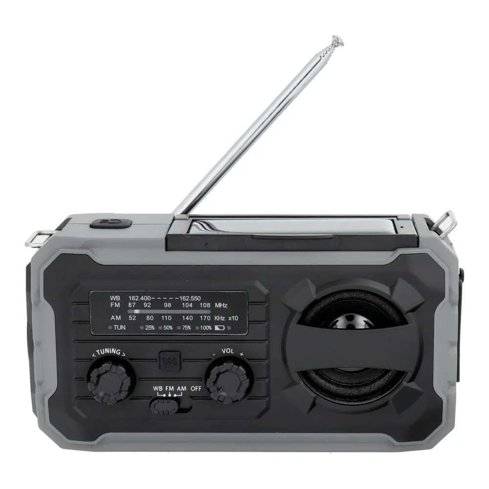Datorită bateriei litiu-ion încorporate de 4000 mAh, panoului solar și manivelei, dispozitivul asigură independența față de sursele externe de energie. Funcția de alarmă SOS vă permite să declanșați o alarmă sonoră și luminoasă, ceea ce poate fi extrem de util în caz de pericol sau situații de urgență. Interfața USB vă permite să încărcați diverse dispozitive electronice, cum ar fi un telefon sau o tabletă, atunci când nu aveți acces la rețea, iar lanterna încorporată este un companion neprețuit în situațiile în care aveți nevoie de o sursă de lumină fiabilă.
